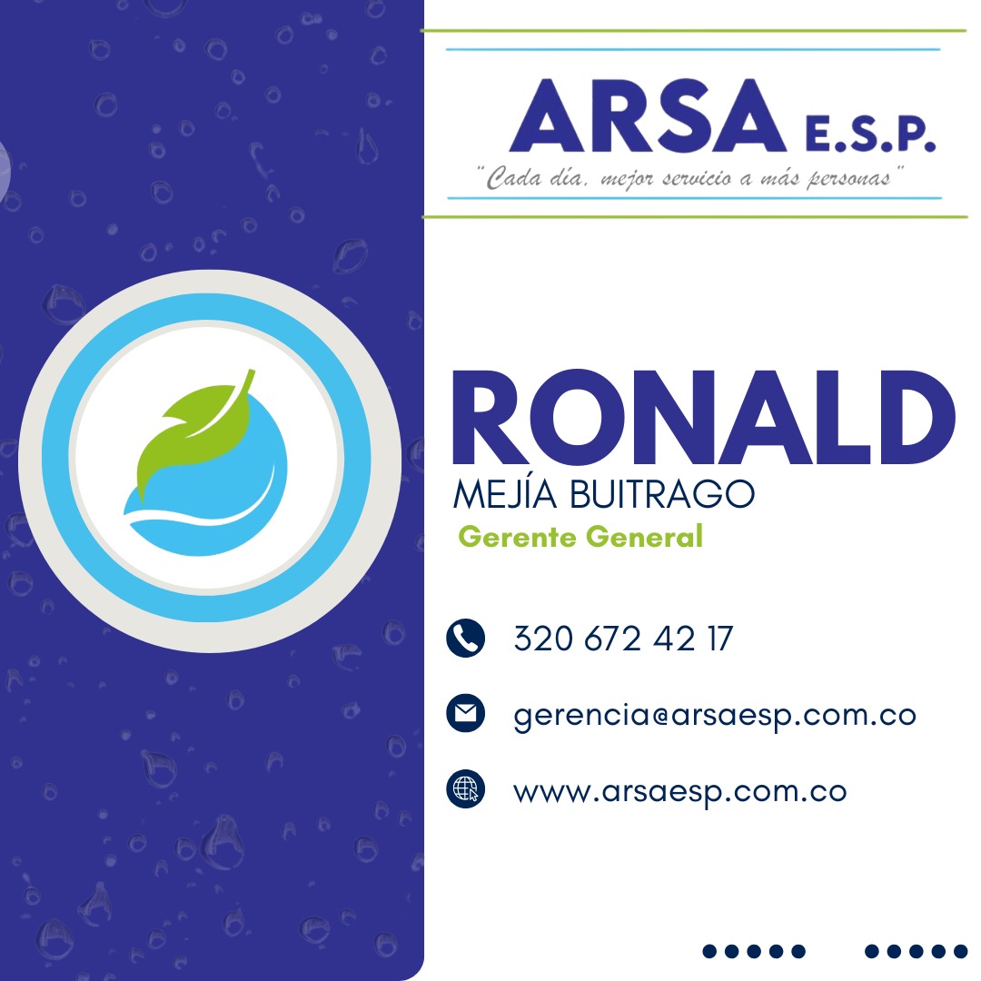 ARSA E.S.P. opera, administra y mantiene sistemas de acueducto y alcantarillado, generando confiabilidad y calidad de vida a los consumidores, garantizando la prestación de los servicios, con calidad, cantidad y continuidad.